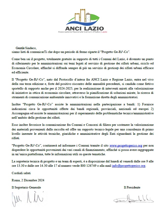 LA LETTERA DEL PRESIDENTE E DEL SEGRETARIO GENERALE DI ANCI LAZIO AI COMUNI