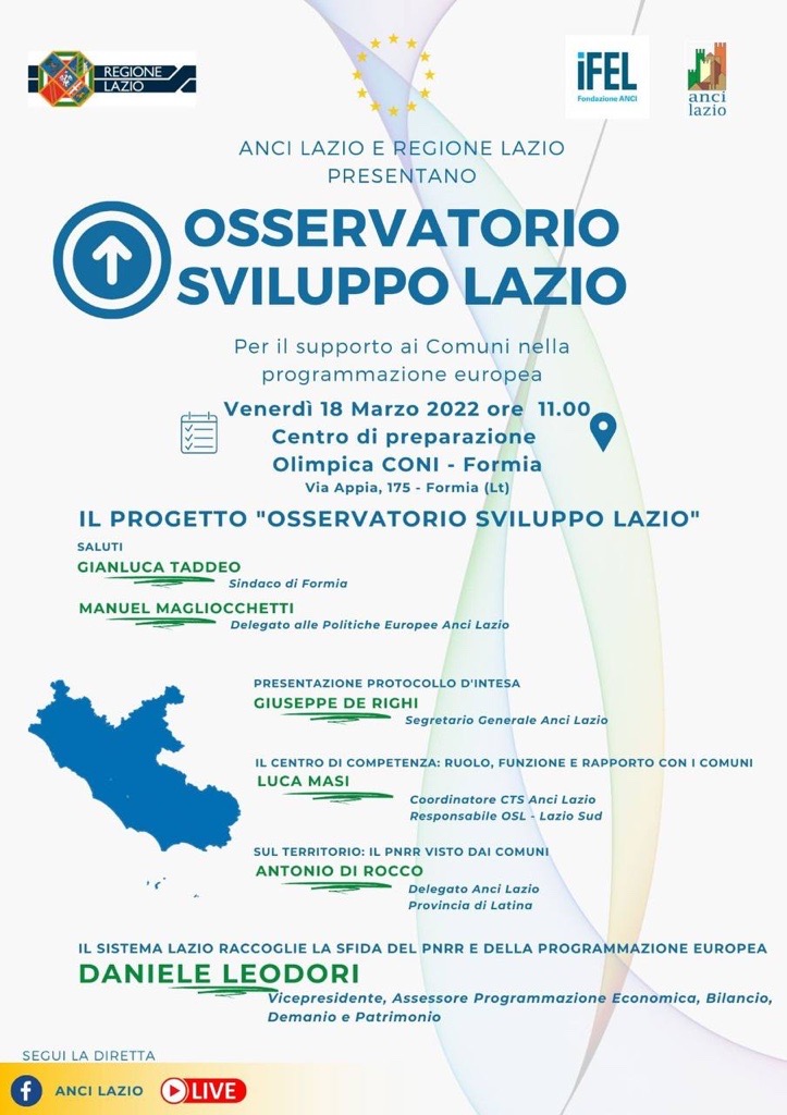 SEGUI LA DIRETTA DI “Osservatorio Sviluppo Lazio” – 18 MARZO 2022 ORE 11
